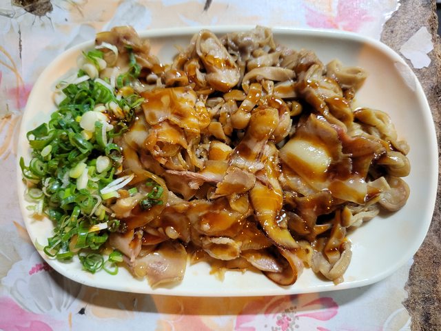 滷味切了網路評論推薦的大腸和豬頭皮。大腸無臊,切成