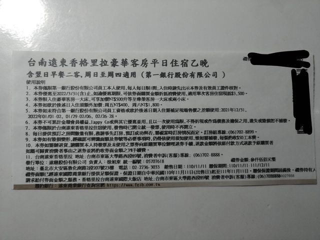 2.台南香格里拉,票面價3500,售2940
