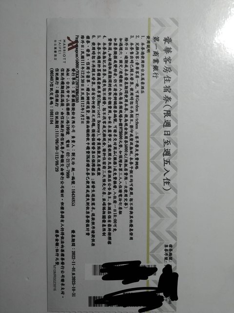 5.台北萬豪酒店,票面價5000,售4200