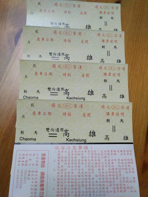 標題[商業] 國光客運 朝馬至高雄回數票