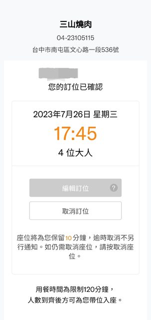 標題[贈送] 南屯/三山燒肉7.26晚餐訂位
