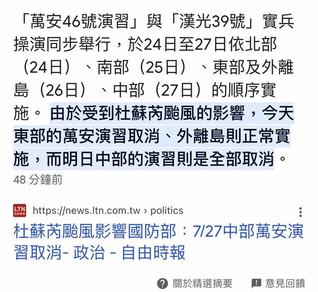 推 hawdaiya : 沒放假還取消演習? 有事嗎? 07/26 20:31