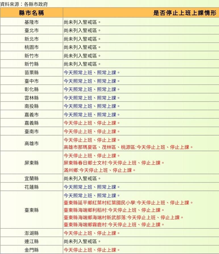 → baby1818 : 雲林部分鄉鎮也停班停課了 07/28 07:55