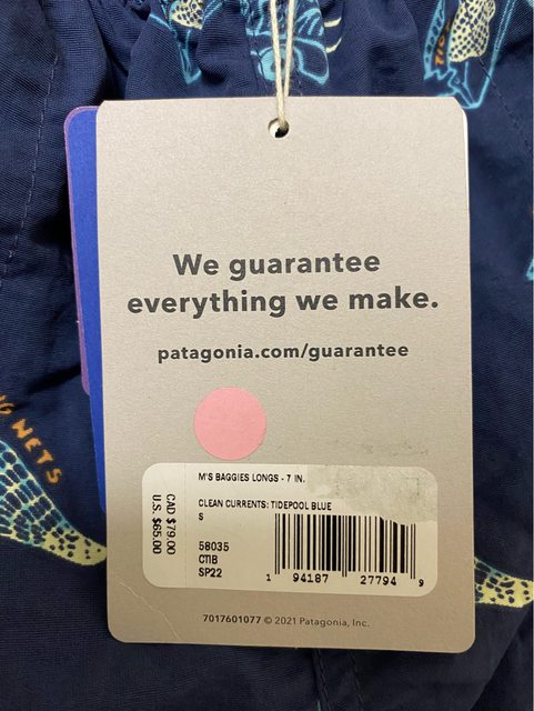 出售物品3: 全新男款Patagonia Baggies Shorts 7吋 短褲 - S號 印花深藍(適合30腰) 售價:1500