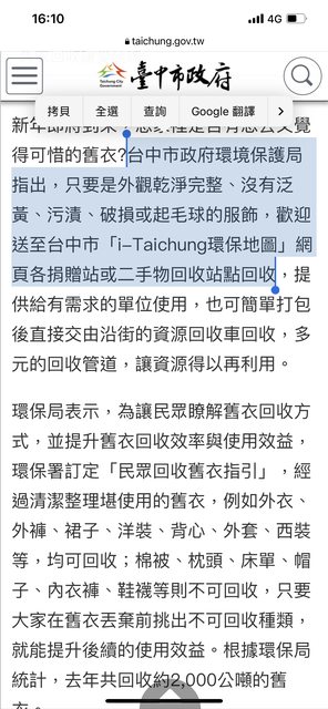 推 flyfar : 臺中市的資源回收車會收舊衣服 07/30 17:08