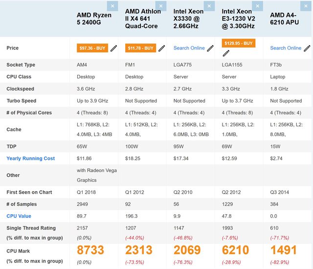 CPU跑分參考: