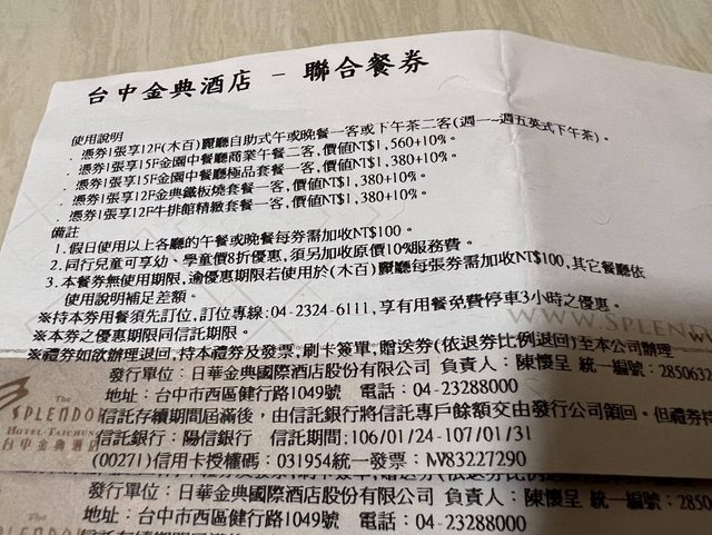 標題[交易] 逢甲/金典酒店聯合餐券