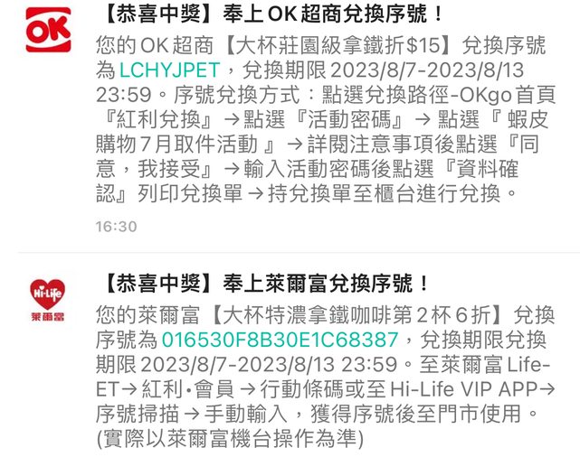 沒有在喝超商咖啡 附上序號請自取(留意期限) 使用後請幫忙留言一下 謝謝 --