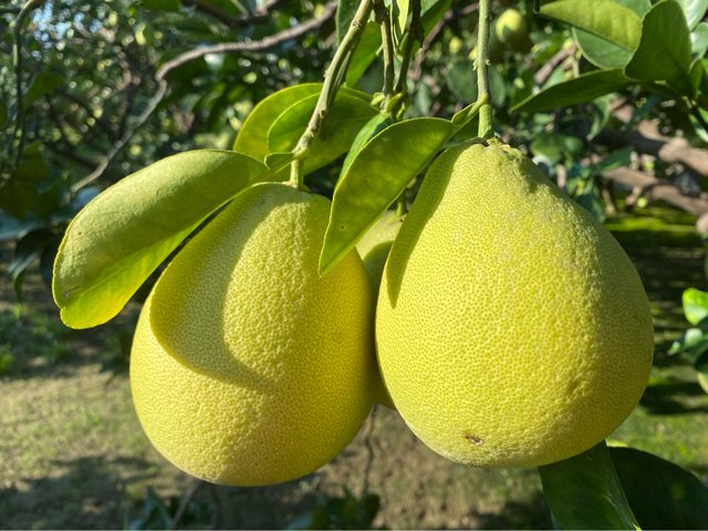 一整年的細心照料結成這渾圓飽滿的柚子
