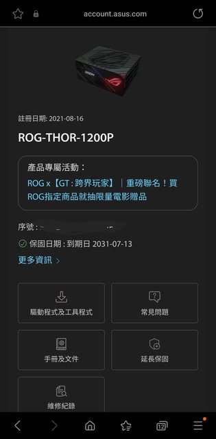 2021/8/16於欣亞購買,保固到2031/7/13