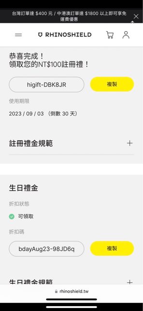 標題[贈送] 犀牛盾折扣碼兩個