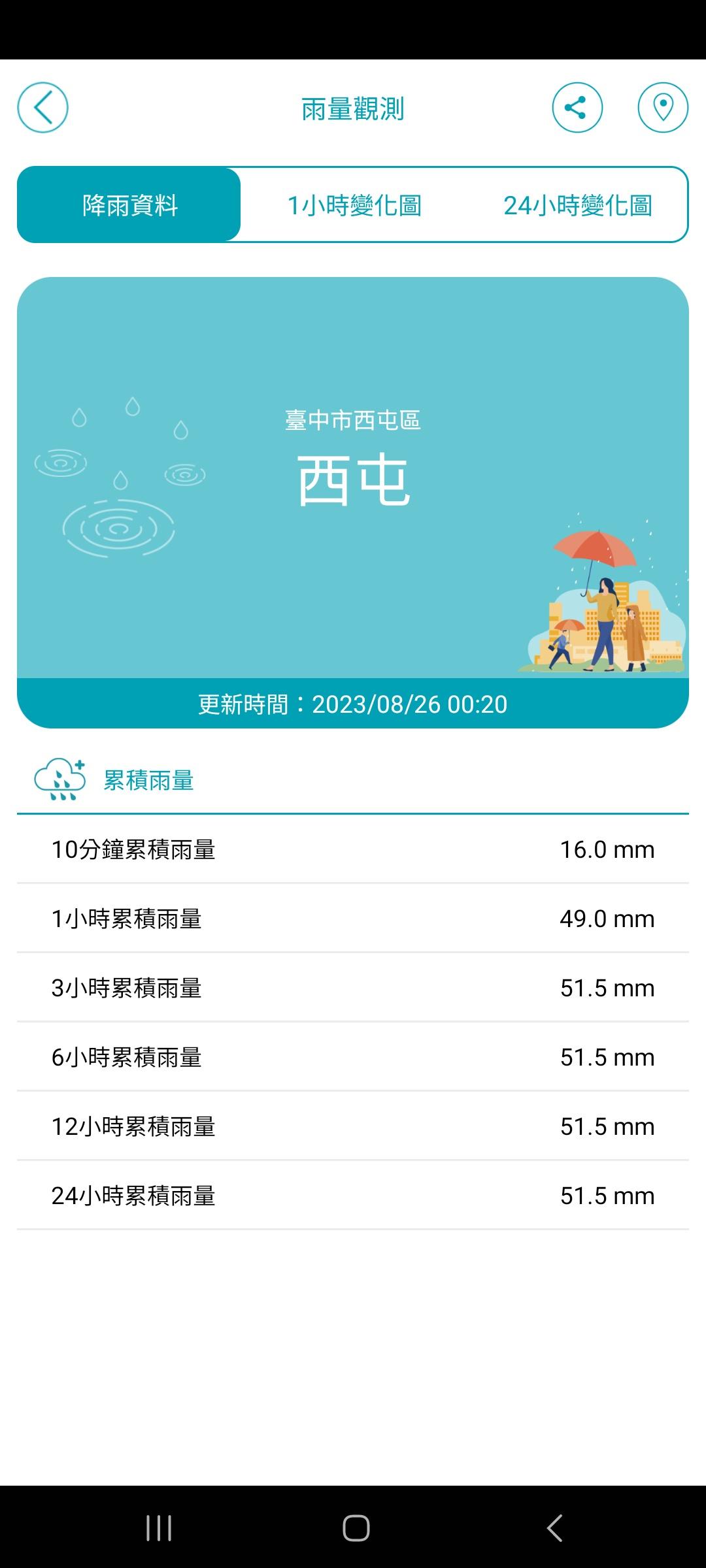 推 kk10519 : 一路從西屯(無雨)北區(暴雨)東區(小雨)太平(無雨) 08/25 22:41