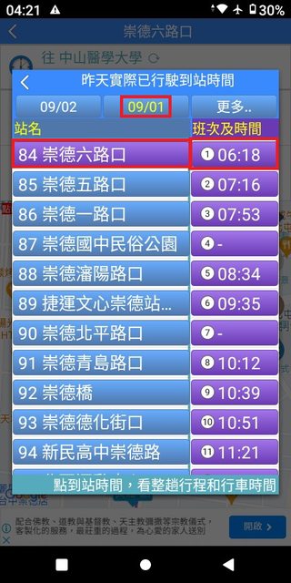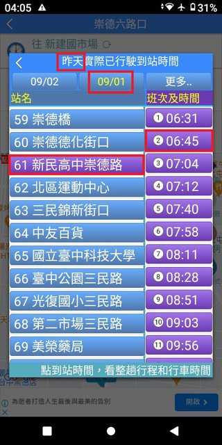 但在35~43分這之間,卻忽視錯過了發車點近在咫尺且6:40穩定發車的132號。