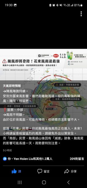 噓 moon456403 : 這個是中颱 我不信台中明天沒影響== 09/03 20:08