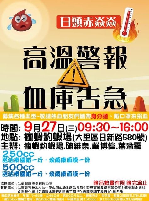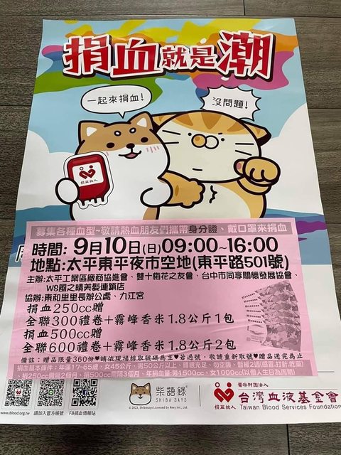 推 n10617 : AB型、A型、O型缺血中,請大家幫補充血庫 09/04 00:11