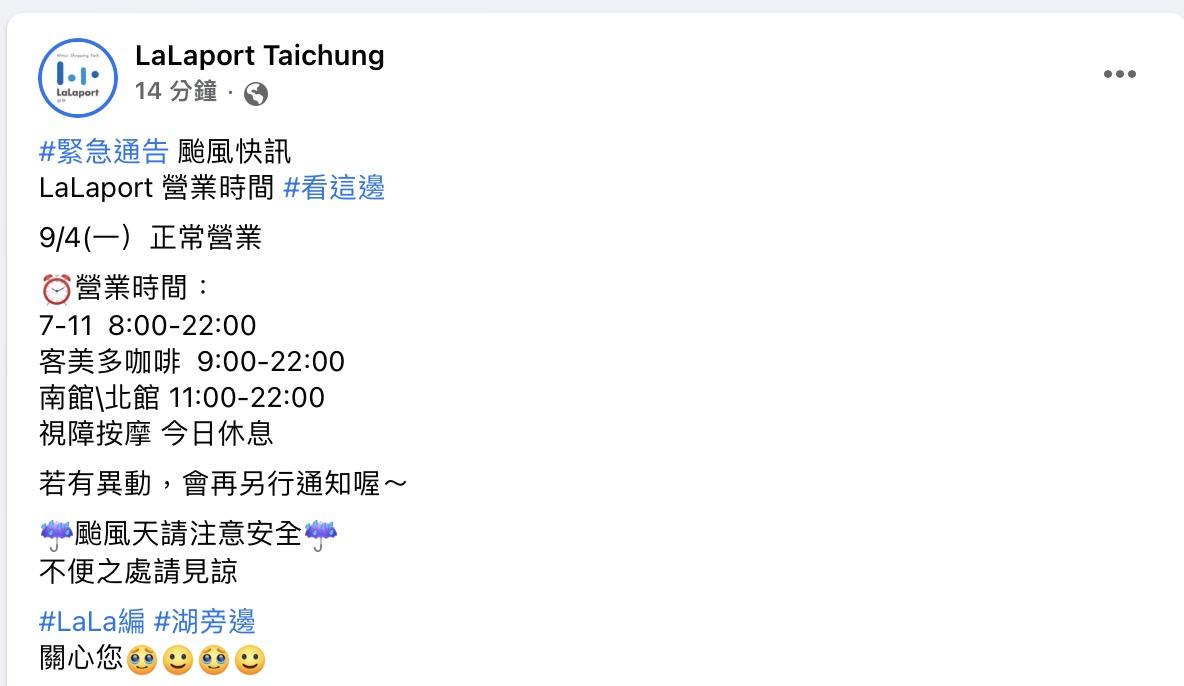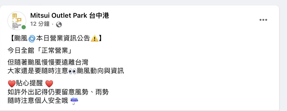 推 monochang : 誰規定放颱風假百貨公司不能開的,在那邊酸什麼啦 09/04 10:00