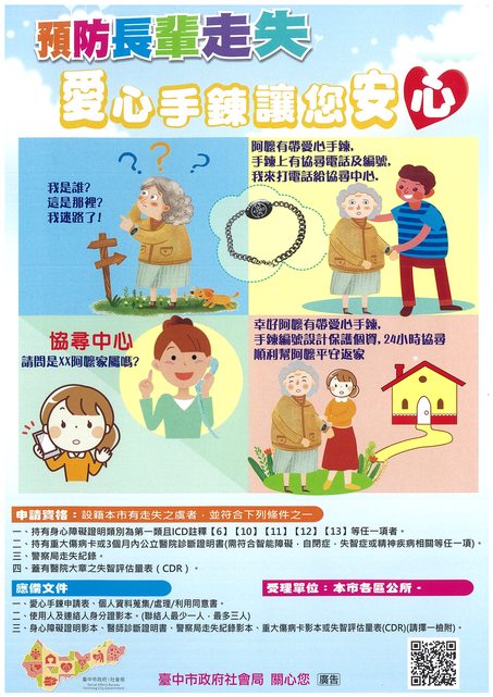 標題[資訊] 預防長輩走失!中市社會局鼓勵申請免費愛