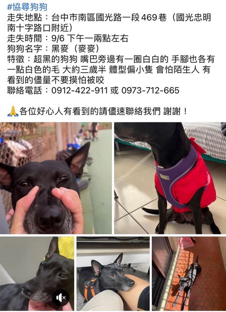 標題[協尋] 轉po 遺失/南區/黑米克斯
