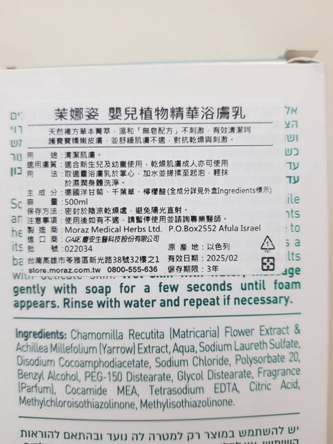 『MORAZ 茉娜姿 嬰兒植物精華浴膚乳500ml』,全新未拆,售700