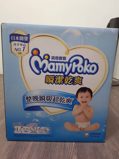 『滿意寶寶瞬潔乾爽黏貼型 L』,整箱198片,全新未拆,售1300