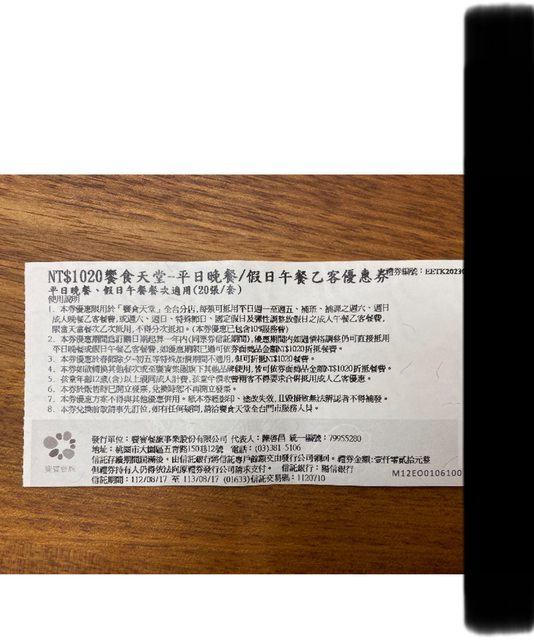 物品:饗食天堂平日晚餐/假日午餐餐券