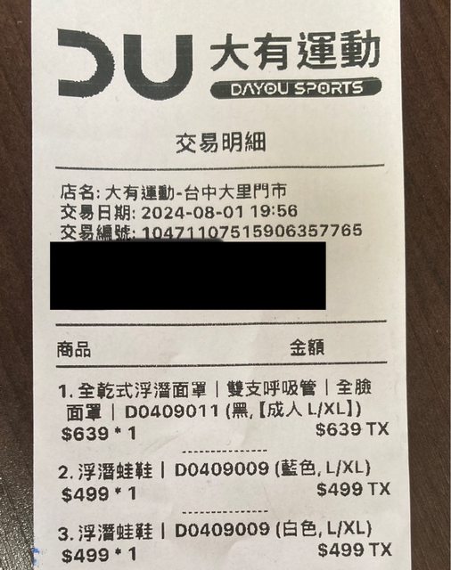 3.八月初在體育用品店購買,原價639,覺得不符合個人需求,150元售出。