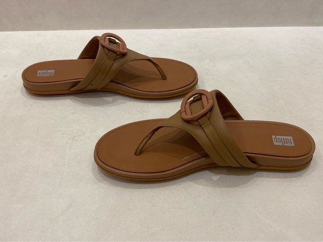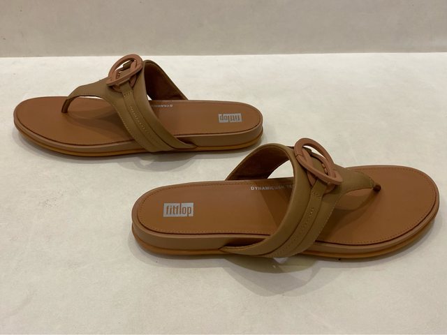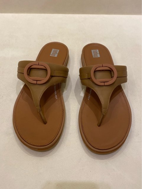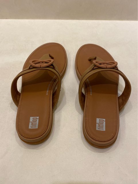 出售物品2: 全新女款FitFlop GRACIE RUBBER-CIRCLET TOE-POST SANDALS圓扣夾腳涼鞋-US9 拿鐵棕 色 售價:2000