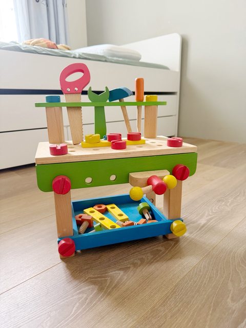 【備註】此木匠工具檯品質非常好,非塑膠玩具可比,兒子長大了故售出,因較少上PTT