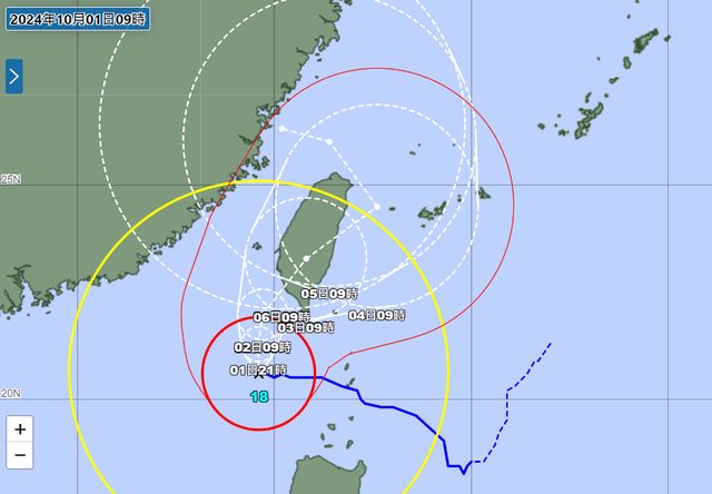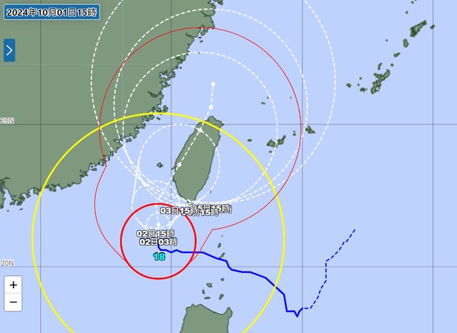 本氣象廳1日上午才預測,山陀兒可能會在登陸後穿台,並以S型迴轉,再度靠近台灣。但