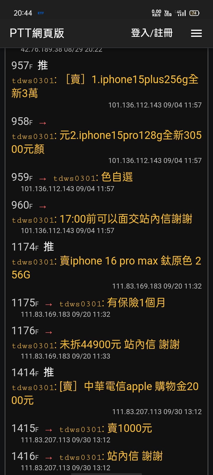 噓 enthpzd: 轉賣仔吧,查他發文徵好幾隻手機, 再查 101.136.255.52 10/03 20:41