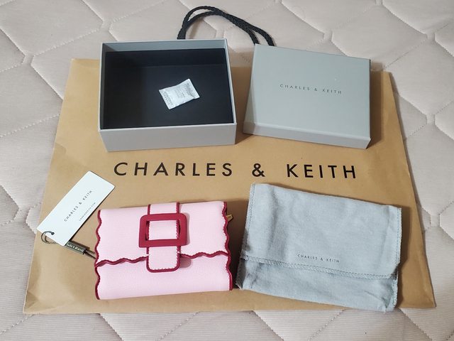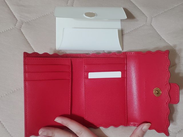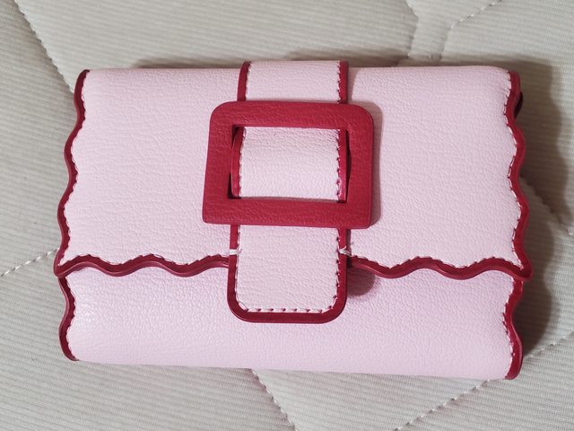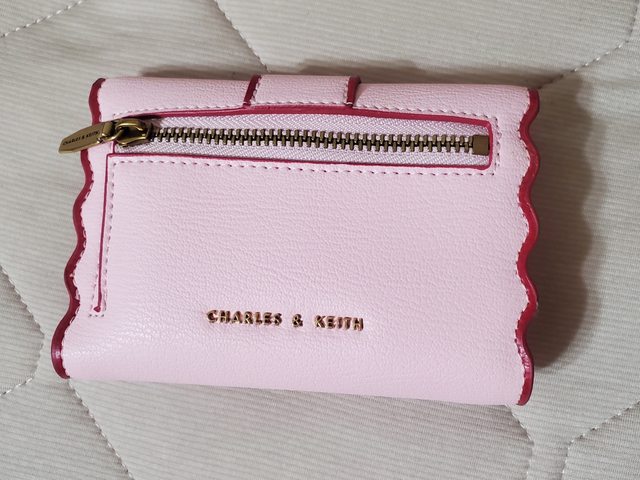*西區公益三角公園可面交 *或是付款後 北區大樓管理室自取 *可開全家好賣+/711賣貨便 免運 *意者站內信留Line ID方便聯絡 1. 小CK粉色波浪滾邊短夾 $650 (但也有點接近中夾 是去年出的款式,全新未使用,僅此次拿出來拍細節照 含Logo大紙袋/盒子/防塵袋