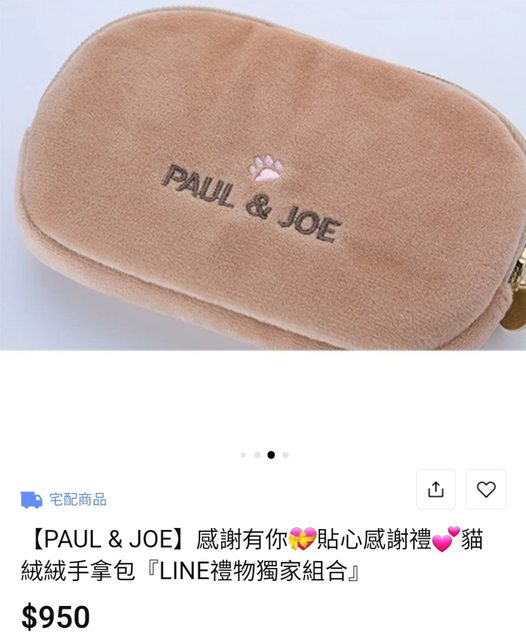2. PAUL &JOE貓絨絨手拿包(化妝包)&旅行組 $550 全新未使用,僅此次拿出來拍細節照 含Logo紙袋/手拿包的袋子從未拆過 因此部分照片取自官網