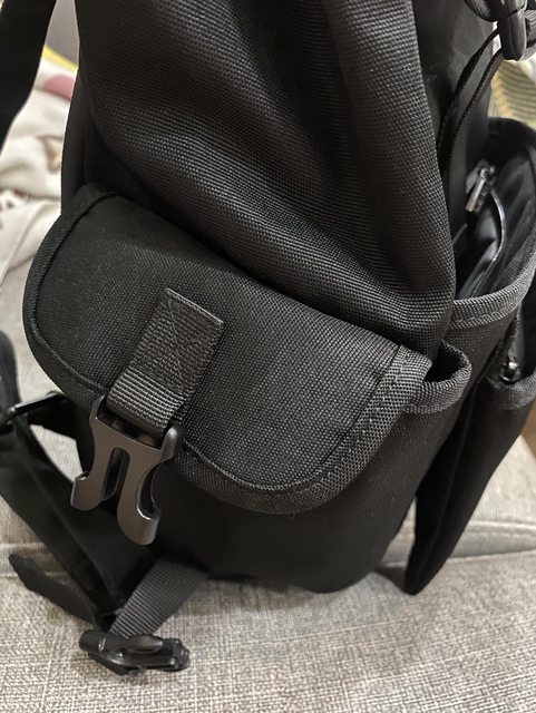 背後有獨立直暗袋很大 且有防盜扣環 此袋不會通到主袋 另一邊的直拉鍊則可直通主袋,也有防盜扣環,功能性超強
