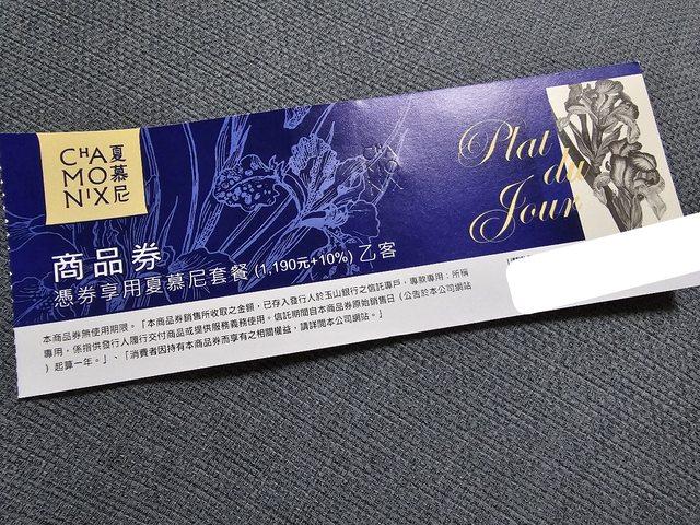 1. 夏慕尼餐券 只有一張 $1150