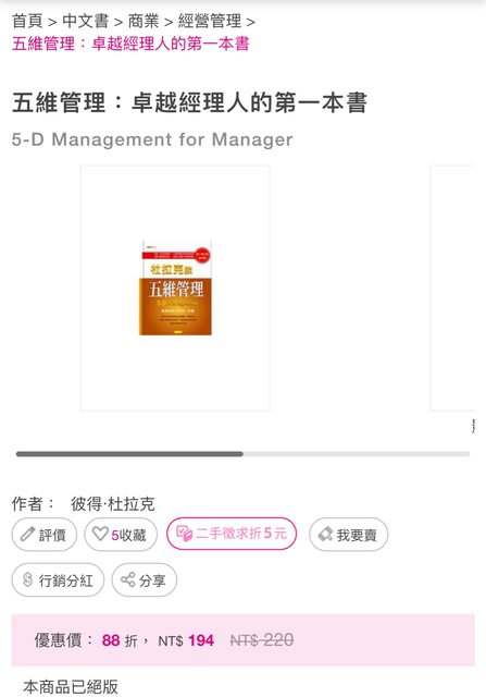 徵求項目:五維管理:卓越經理人的第一本書