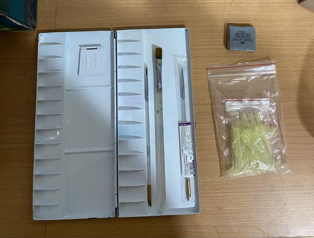 物品說明:念書時期的工具組,丟掉可惜,都還可以使用,只是要自行清潔,另外有一盒退坑的紙膠帶。繪圖板有車載比較好。
