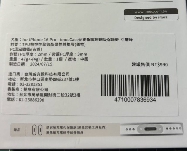 標題[交易] imos iPhone16 pro 磁吸手機殼