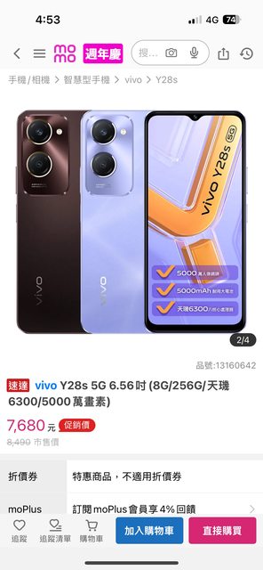 續約買的手機,原價MOMO 7680元
