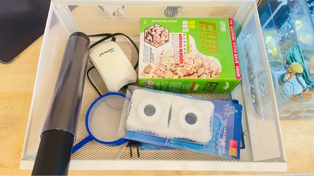 物品名稱:魚缸、魚、水族用品一堆