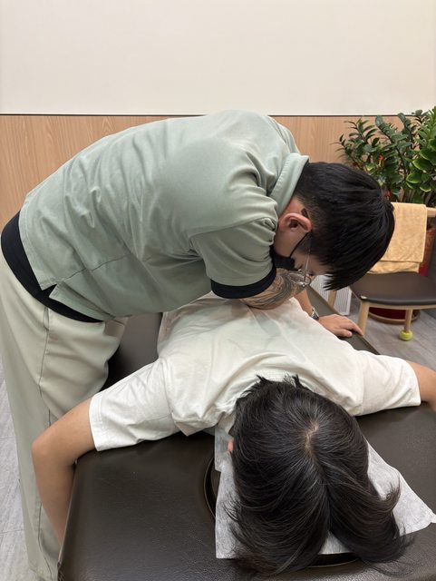喀喀的聲音,所以師傅不是用整骨的方式調整,跟其他家不一樣的是他們家是用撥筋的方