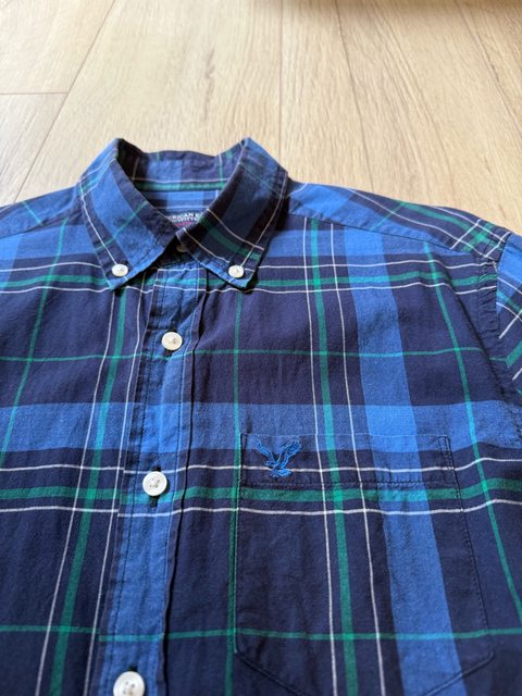 American Eagle 藍底 格紋襯衫 男美國尺碼XS / 240元 (約亞洲男生尺碼M)