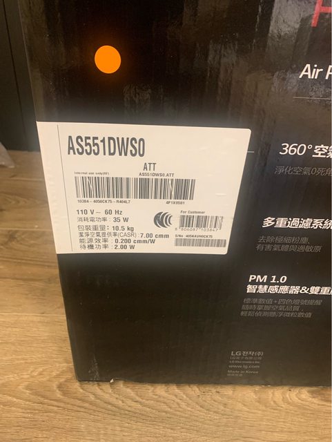 3. 物品名稱: 全新LG樂金大白空氣清淨機AS551DWS0 價格:8200 保固:2年(2024/6收到) 物品實照: