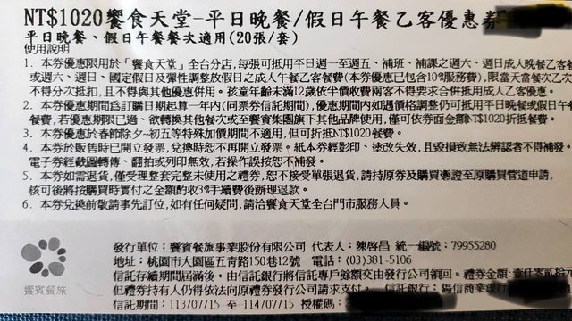 標題[商業] 饗食天堂平日晚餐/假日午餐餐券