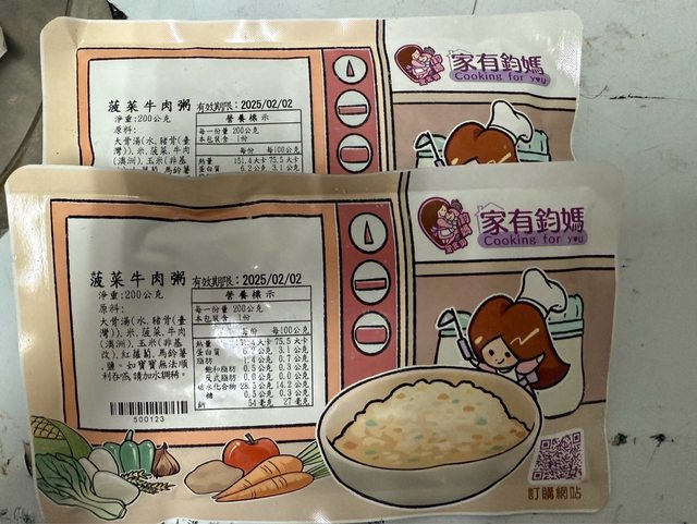 菠菜牛肉粥2包- 2025/2/2