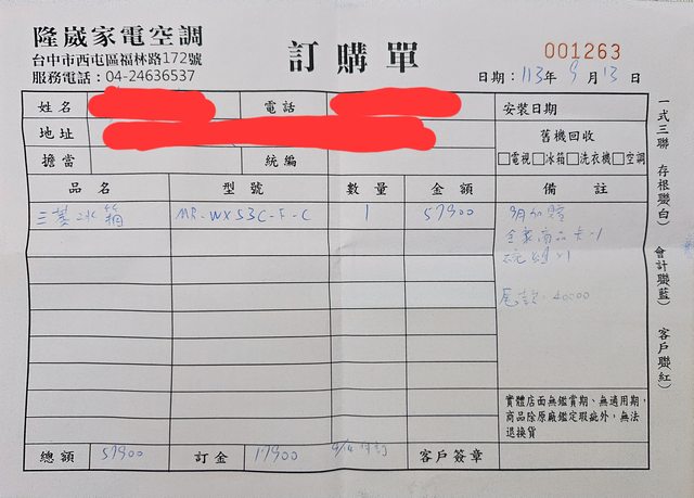 標題[交易] 台中全區/三菱全新冰箱WX53C