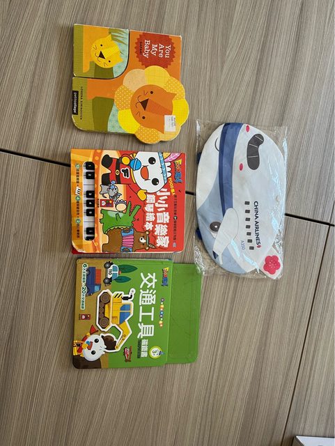 物品名稱:幼兒童書(英文*1、音樂中文書*1、交通工具中文磁鐵書*1)、華航兒童飛機