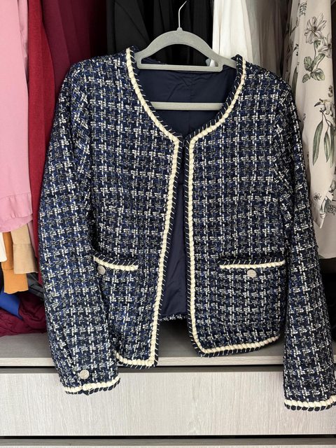 小香風深藍毛織外套