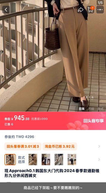 韓貨 Approach 西裝褲 卡其色 S