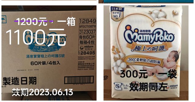 1. 1000元一箱,滿意寶寶 極上呵護 黏貼型 S 240片 2. 250元一袋,滿意寶寶 極上呵護 黏貼型 S 60片,共一袋