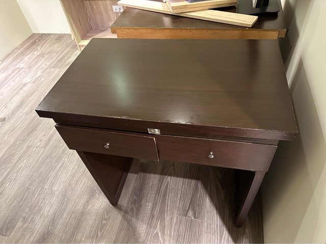 物品名稱:書桌2張、折疊桌(小的)2張(深淺色各一)